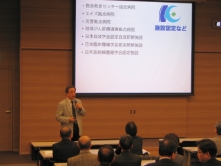 同病院薬剤部長の橋田亨氏は見学に先立ち,同院の薬剤師の活動状況をレクチャーしました。