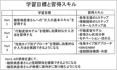 研修は3つのステップに分かれていて,今回取材した最初のステップは,糖尿病患者を例にした患者への基本的な介入スキルの習得が目標です。