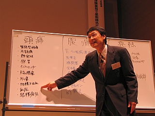 特別講演を行った昭和大学薬学部薬学教育推進センター教授の木内祐二氏は,薬剤師がOTC薬販売も含めたプライマリ・ケアで患者に関わるためには,患者の症候から適切に臨床判断する能力が求められると指摘。薬学教育で教えている症候学と臨床判断の実際を会場で再現しながら講演しました。