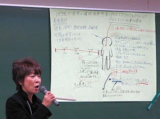 各グループは,地域医療のなかで薬剤師と医師がどのような点で連携をとるか,そのときにどのようなプロトコールが必要になるか,共同薬物治療管理を進めるために,薬剤師がどのような情報やスキルを身につける必要があるか,などを話しあい,結果を発表するとともに全体で討論を行いました。